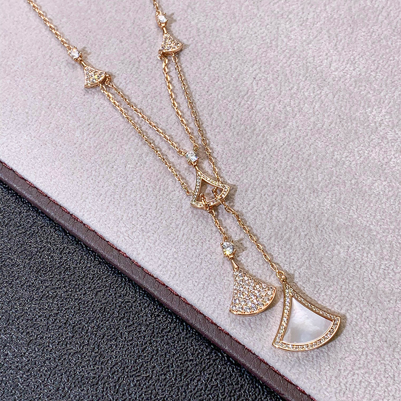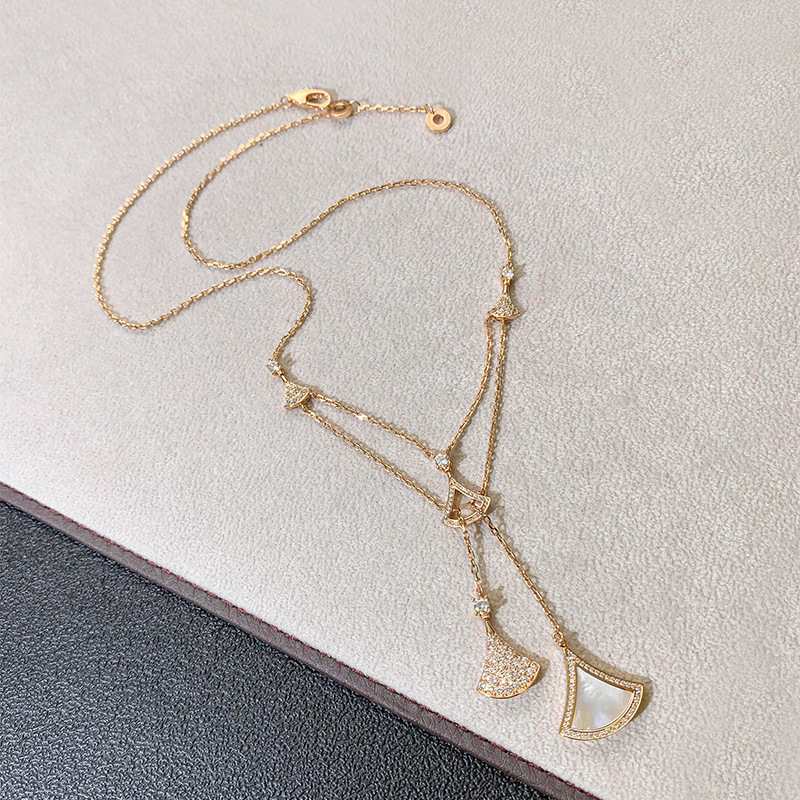 Multi-fan double-layer skirt necklace white shell plated tassel clavicle necklace