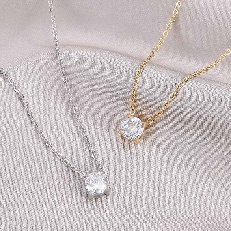 Stainless steel single zircon pendant temperament simple versatile personality necklace ins light luxury clavicle chain