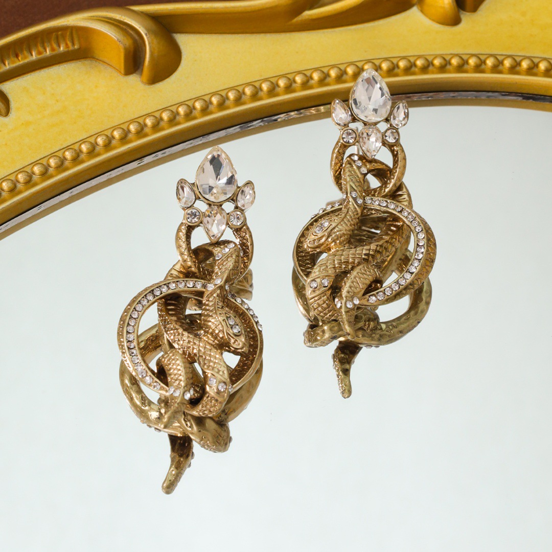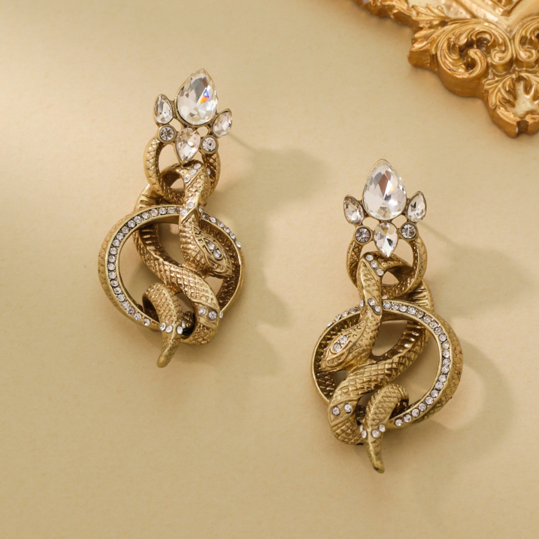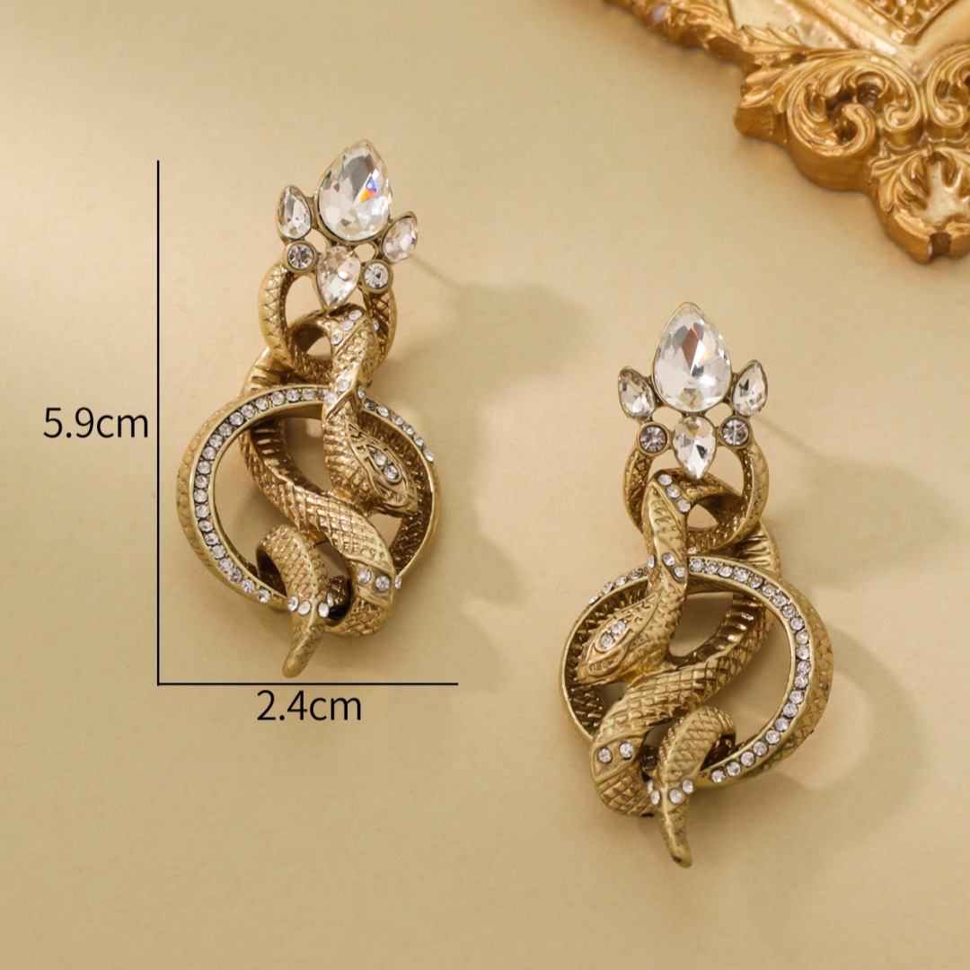 Retro palace snake-shaped diamond earrings, new exaggerated personality temperament long earrings